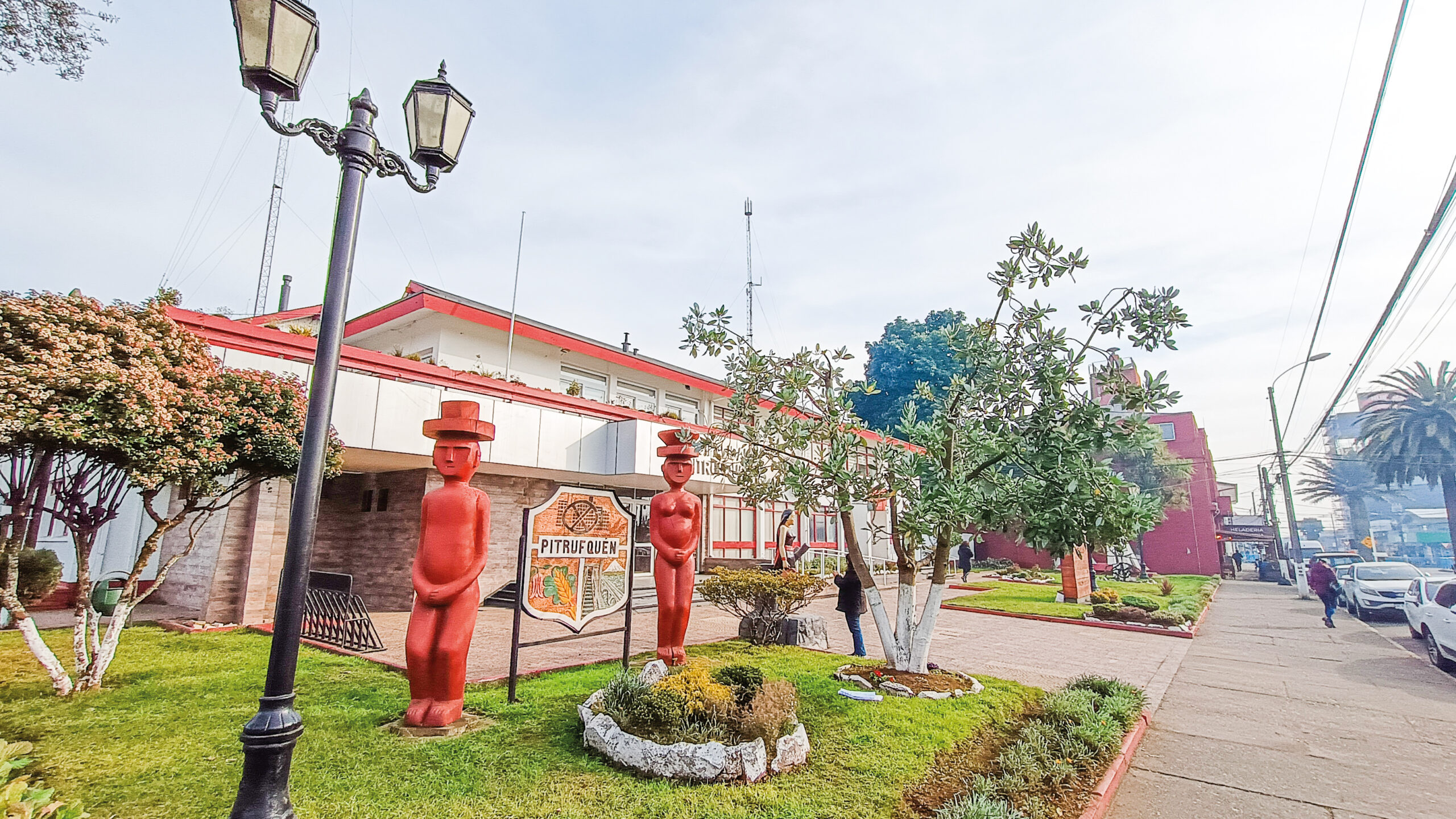Junto a ellas se ubica el Escudo de Pitrufquén, que resume la identidad local en sus cuadrantes: